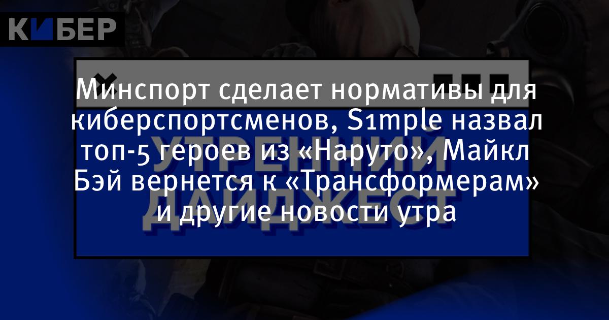 Минспорт сделает нормативы для киберспортсменов, S1mple назвал топ-5 героев из «Наруто», Майкл Бэй вернется к «Трансформерам» и другие новости утра
