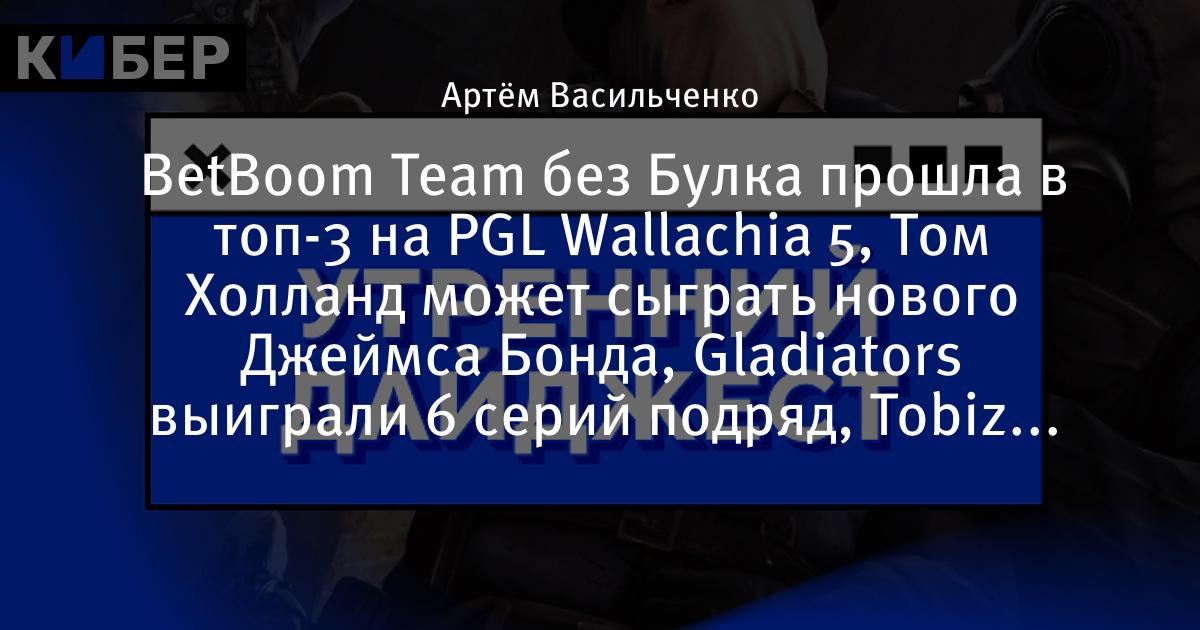 BetBoom Team без Булка прошла в топ-3 на PGL Wallachia 5, Том Холланд может сыграть нового Джеймса Бонда, Gladiators выиграли 6 серий подряд, Tobiz стал тренером Heroic и другие новости утра