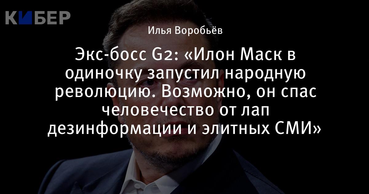 Экс-босс G2: «Илон Маск в одиночку запустил народную революцию. Возможно, он спас человечество от лап дезинформации и элитных СМИ»