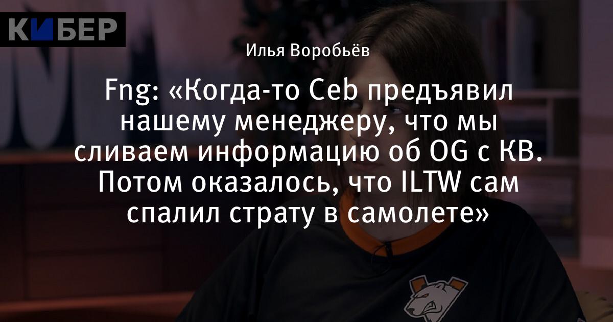 Fng: «Когда-то Ceb предъявил нашему менеджеру, что мы сливаем информацию об OG с КВ. Потом оказалось, что ILTW сам спалил страту в самолете»