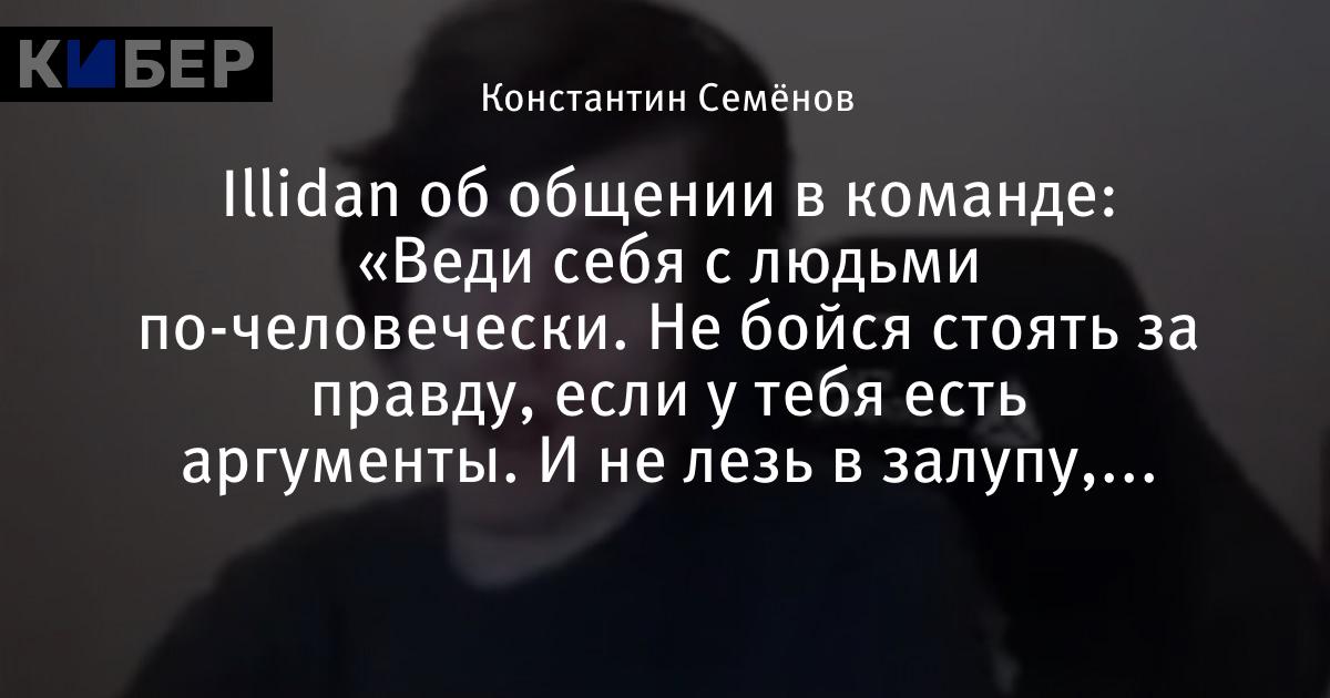 Illidan об общении в команде: «Веди себя с людьми по-человечески. Не бойся стоять за правду, если у тебя есть аргументы. И не лезь в залупу, когда их нет»