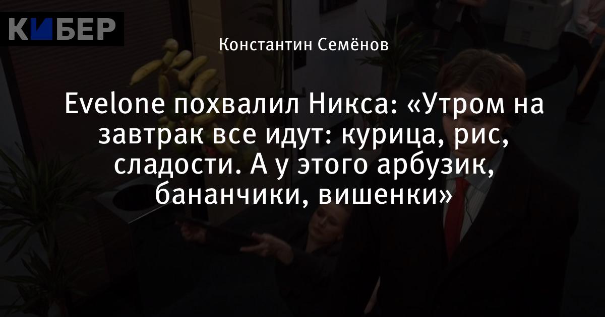 Evelone похвалил Никса: «Утром на завтрак все идут: курица, рис, сладости. А у этого арбузик, бананчики, вишенки»