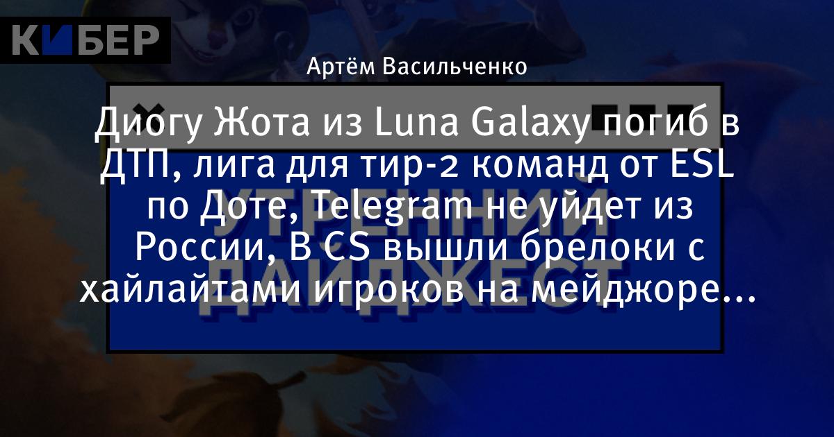 Диогу Жота из Luna Galaxy погиб в ДТП, лига для тир-2 команд от ESL по Доте, Telegram не уйдет из России, В CS вышли брелоки с хайлайтами игроков на мейджоре и другие новости утра