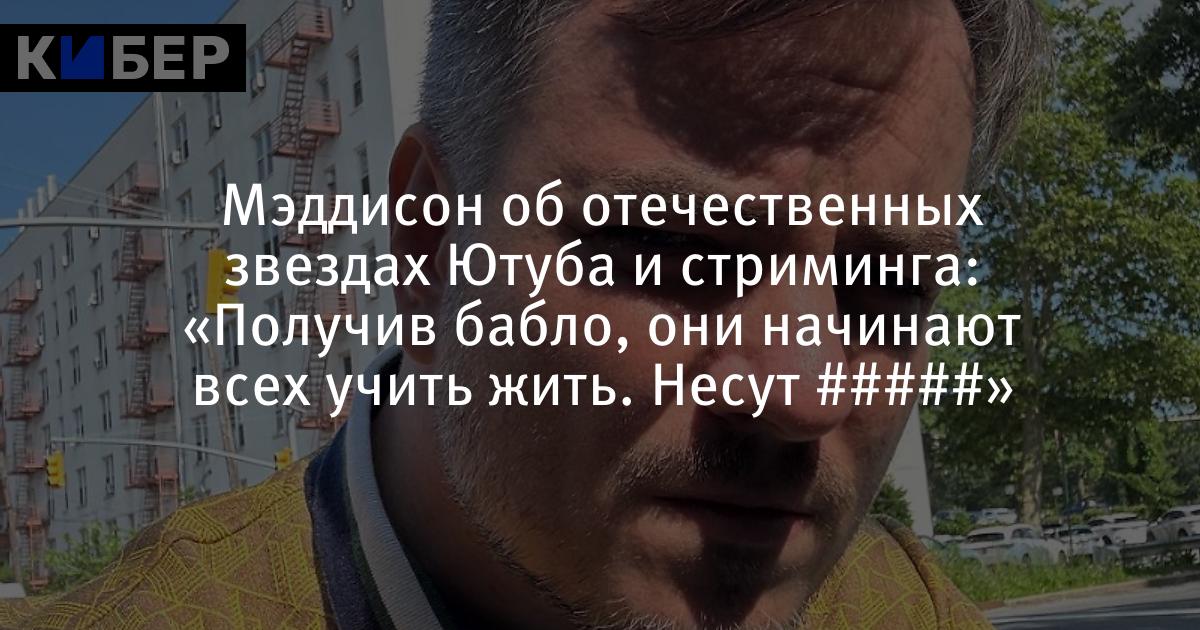 Мэддисон об отечественных звездах Ютуба и стриминга: «Получив бабло, они начинают всех учить жить. Несут #####»