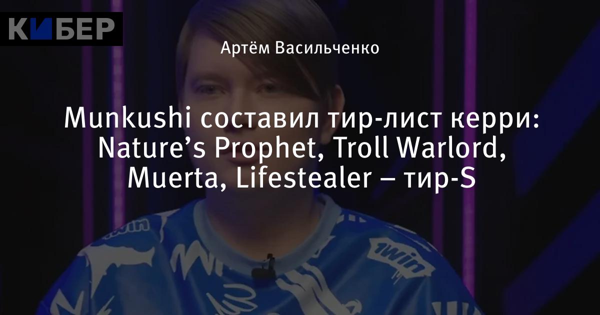Munkushi составил тир-лист керри: Nature’s Prophet, Troll Warlord, Muerta, Lifestealer – тир-S