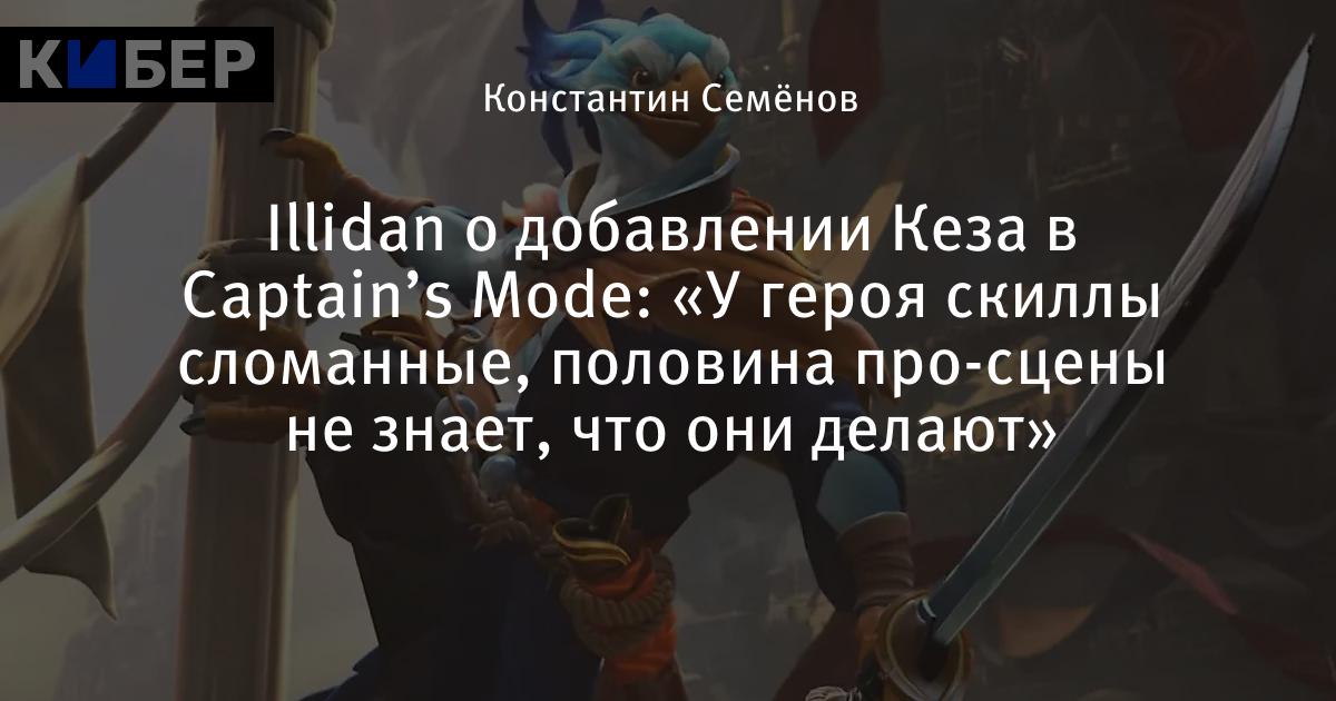 «Конечно, Кеза можно пикать в Captain’s Mode. А когда нельзя-то было? (Кибер: Illidan иронизирует, Кеза в Captain’s Mode пока не добавили). Конечно, можно, Камиль [Koma], ты чего.