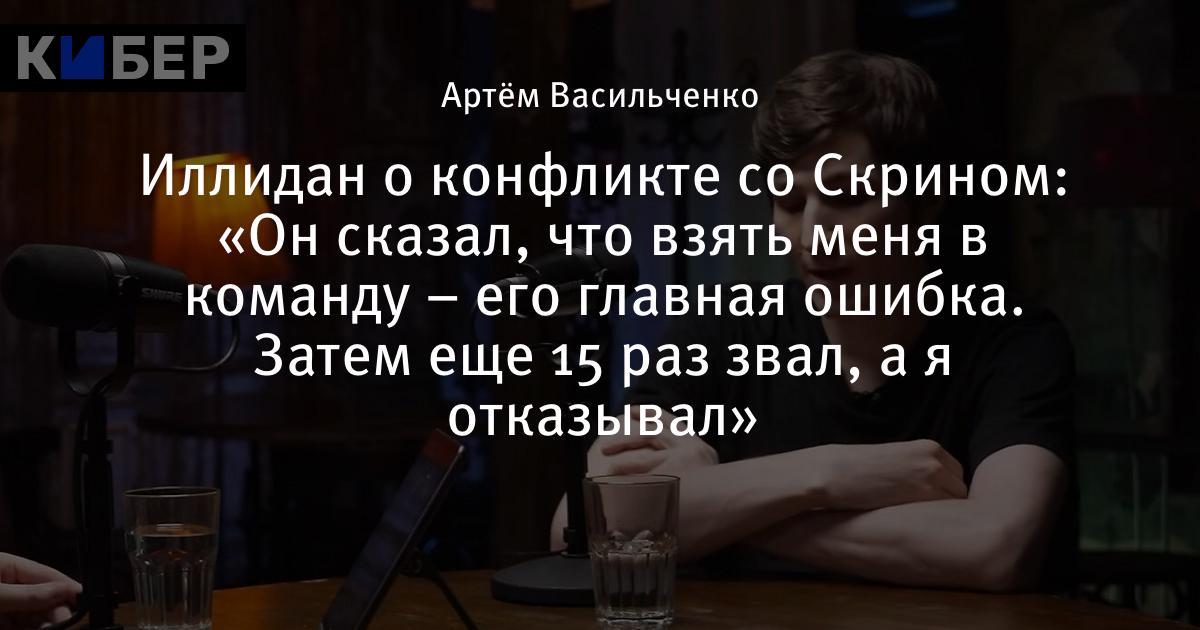 Иллидан о конфликте со Скрином: «Он сказал, что взять меня в команду – его главная ошибка. Затем еще 15 раз звал, а я отказывал»