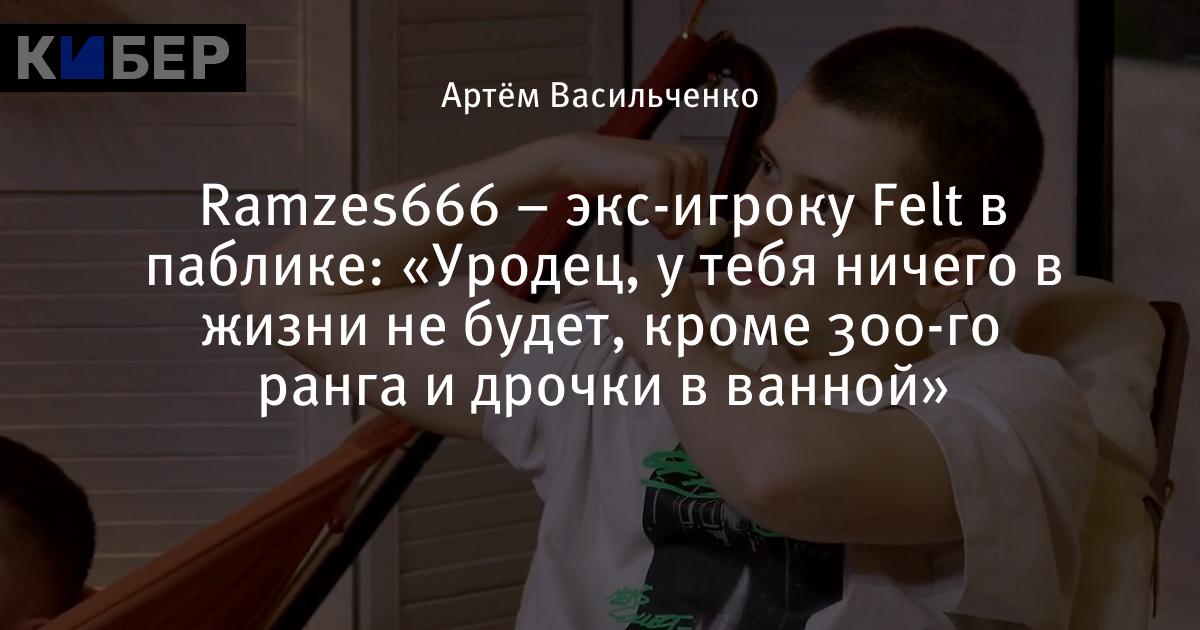 Ramzes666 – экс-игроку Felt в паблике: «Уродец, у тебя ничего в жизни не будет, кроме 300-го ранга и дрочки в ванной»