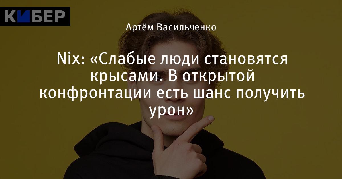 Nix: «Слабые люди становятся крысами. В открытой конфронтации есть шанс получить урон»