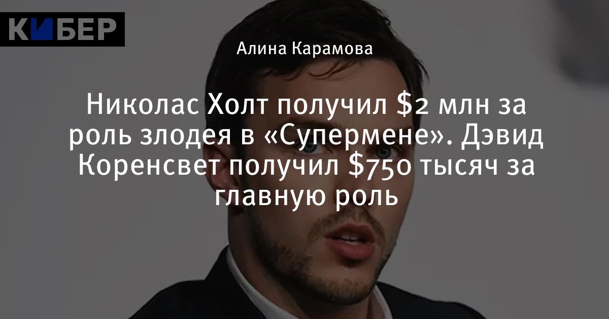 Николас Холт получил $2 млн за роль злодея в «Супермене». Дэвид Коренсвет получил $750 тысяч за главную роль