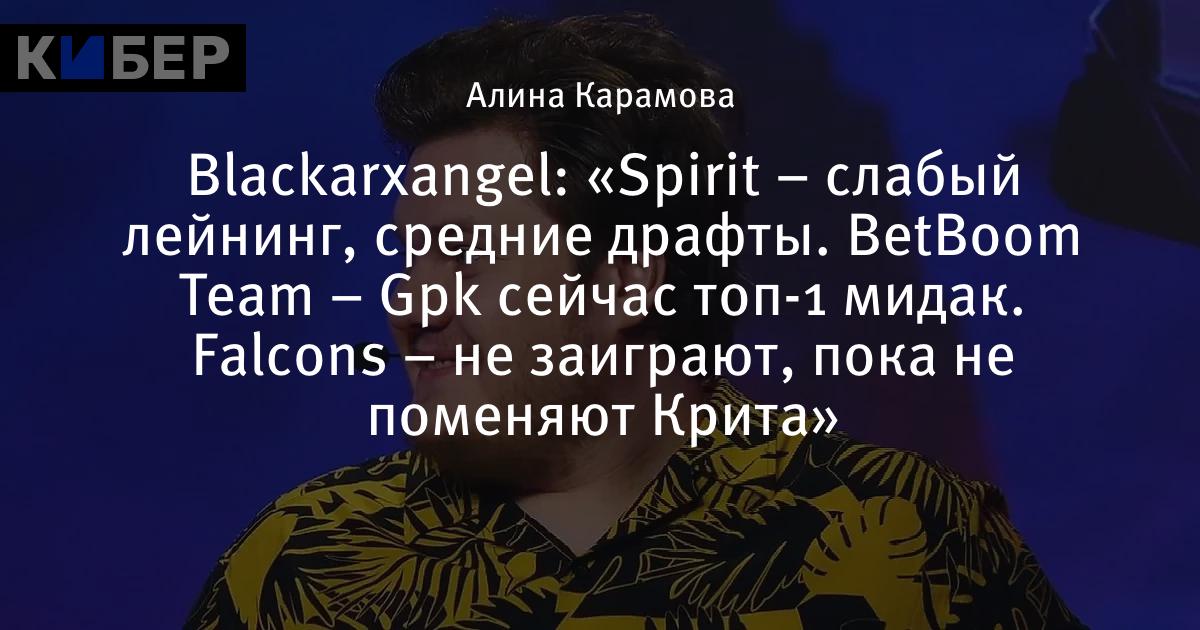 Blackarxangel: «Spirit – слабый лейнинг, средние драфты. BetBoom Team – Gpk сейчас топ-1 мидак. Falcons – не заиграют, пока не поменяют Крита»