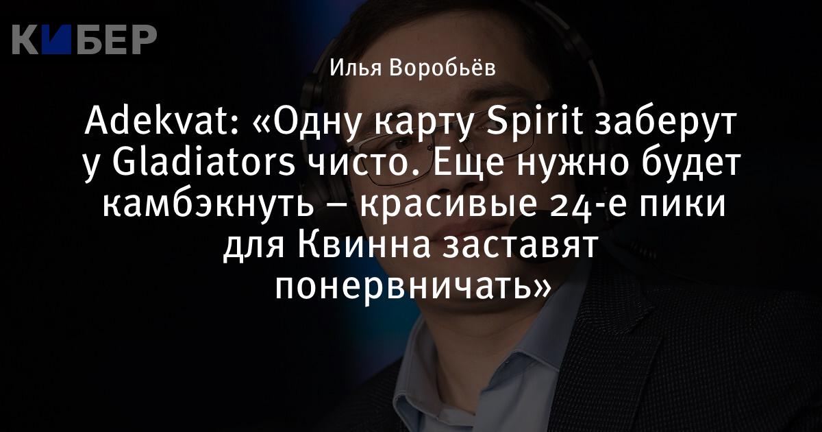 Adekvat: «Одну карту Spirit заберут у Gladiators чисто. Еще нужно будет камбэкнуть – красивые 24-е пики для Квинна заставят понервничать»