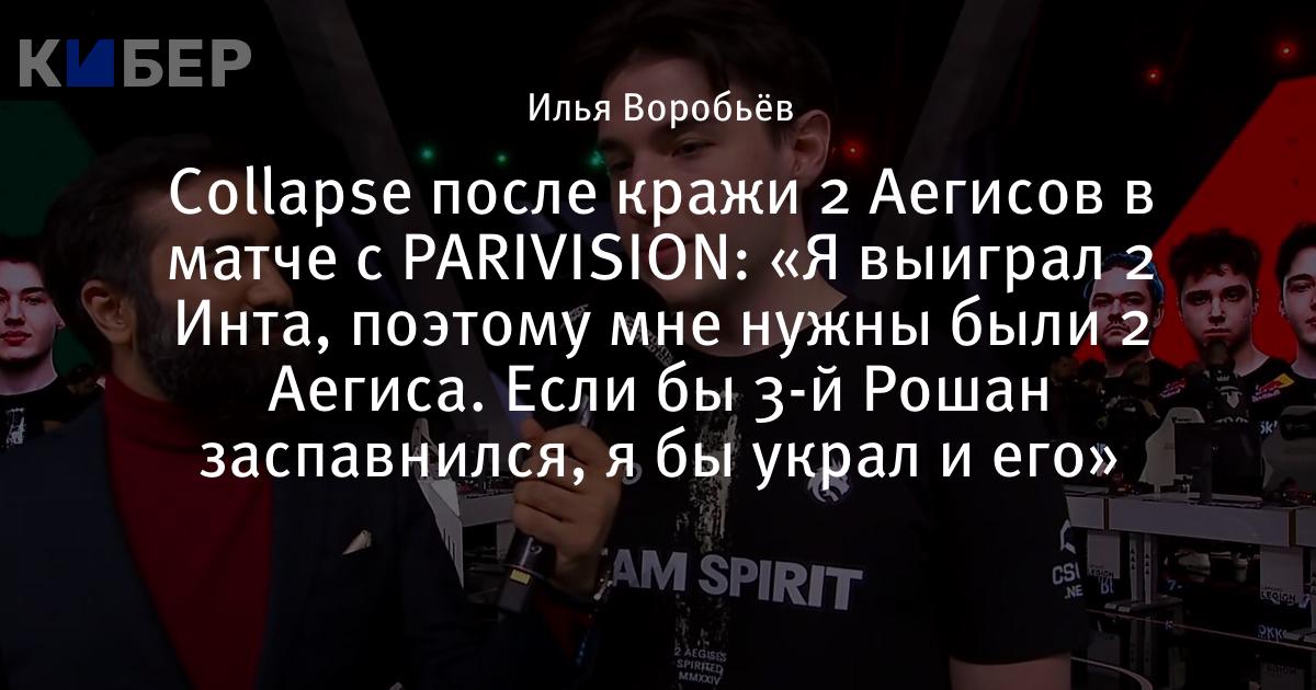 Collapse после кражи 2 Аегисов в матче с PARIVISION: «Я выиграл 2 Инта, поэтому мне нужны были 2 Аегиса. Если бы 3-й Рошан заспавнился, я бы украл и его»