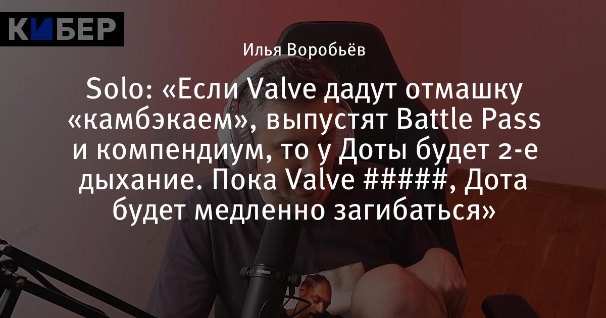 Solo: «Если Valve дадут отмашку «камбэкаем», выпустят Battle Pass и компендиум, то у Доты будет 2-е дыхание. Пока Valve #####, Дота будет медленно загибаться»