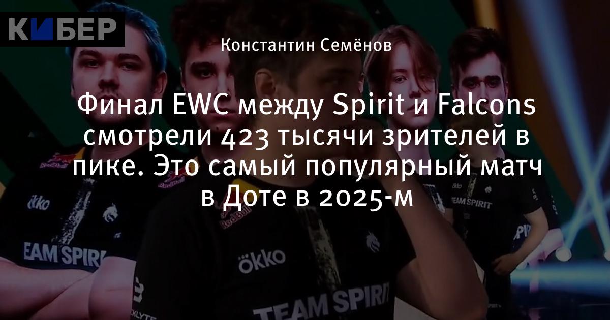 Финал EWC между Spirit и Falcons смотрели 423 тысячи зрителей в пике. Это самый популярный матч в Доте в 2025-м