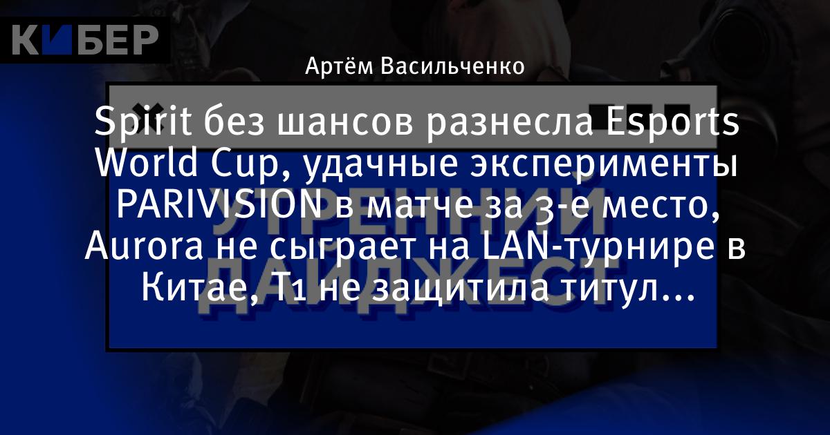 Spirit без шансов разнесла Esports World Cup, удачные эксперименты PARIVISION в матче за 3-е место, Aurora не сыграет на LAN-турнире в Китае, T1 не защитила титул чемпиона и другие новости утра