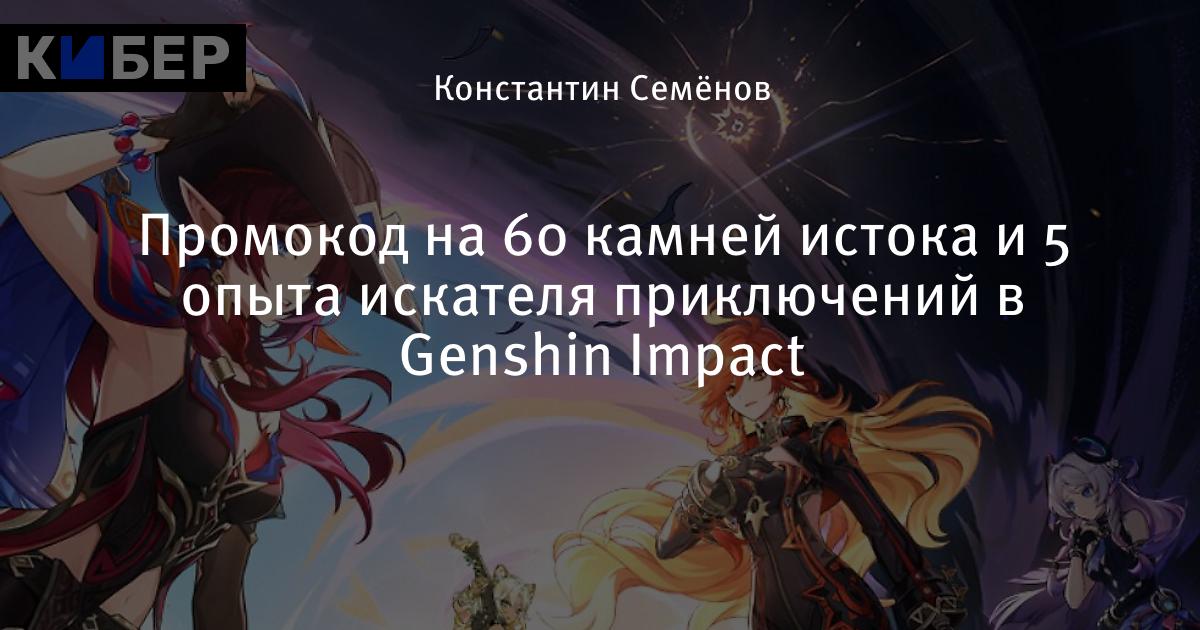 Промокод на 60 камней истока и 5 опыта искателя приключений в Genshin Impact