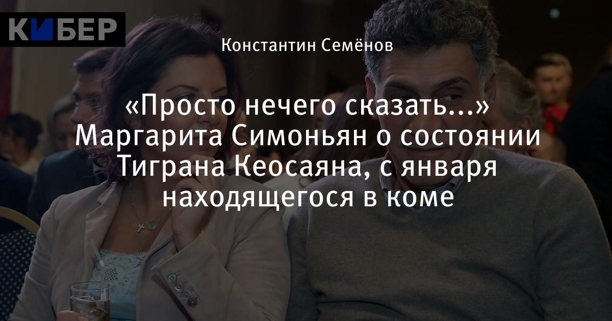 «Просто нечего сказать...» Маргарита Симоньян о состоянии Тиграна Кеосаяна, с января находящегося в коме