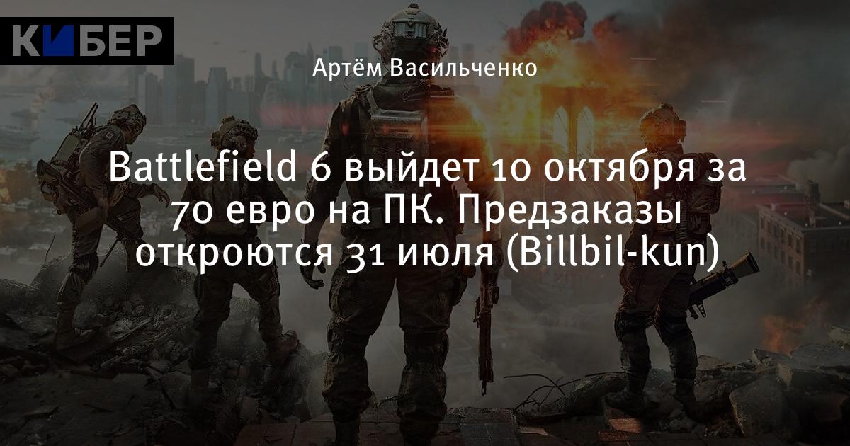 Battlefield 6 выйдет 10 октября за 70 евро на ПК. Предзаказы откроются 31 июля (Billbil-kun)
