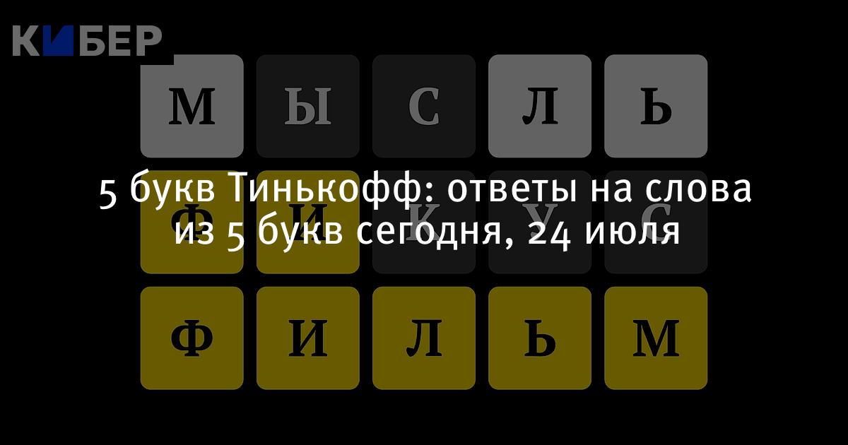 5 букв Тинькофф: ответы на слова из 5 букв сегодня, 24 июля