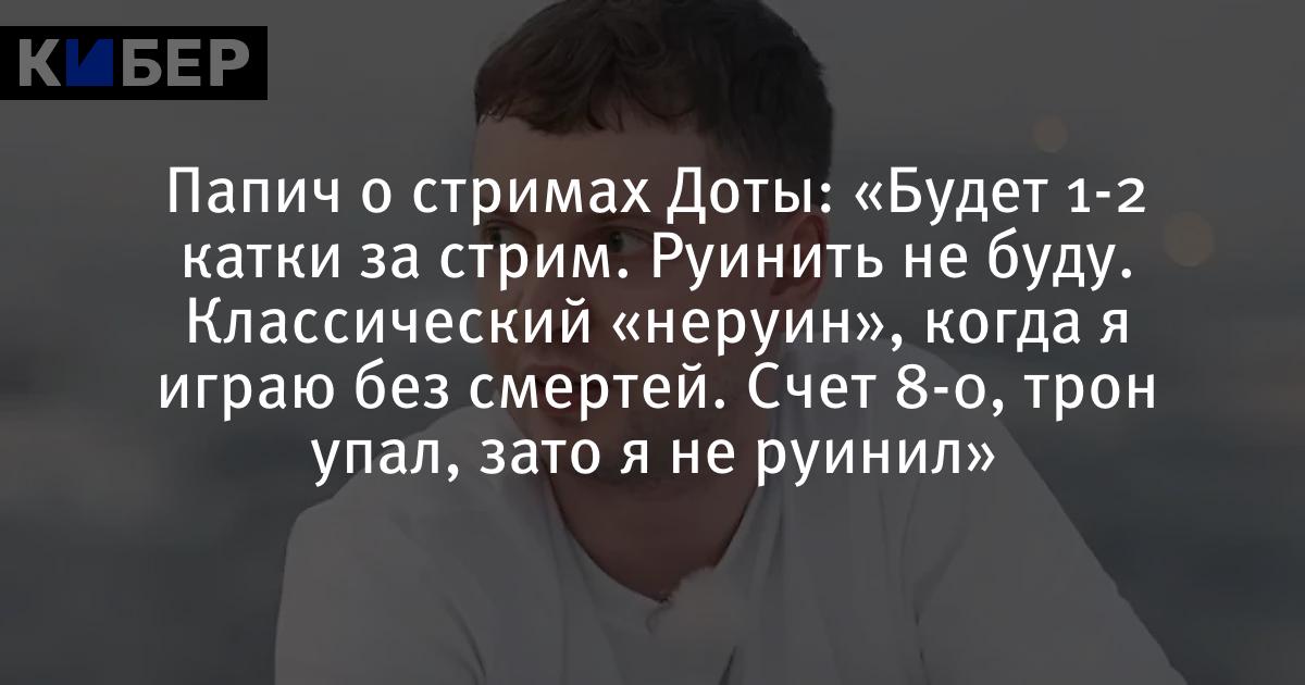 Папич о стримах Доты: «Будет 1-2 катки за стрим. Руинить не буду. Классический «неруин», когда я играю без смертей. Счет 8-0, трон упал, зато я не руинил»