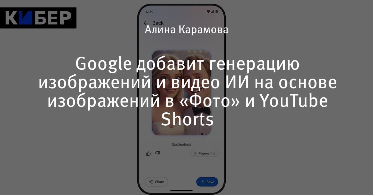 Google добавит генерацию ИИ для «Фото» и YouTube Shorts.