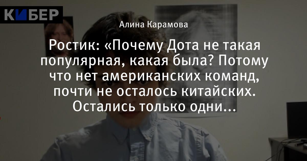 Ростик: «Почему Дота не такая популярная, какая была? Потому что нет американских команд, почти не осталось китайских. Остались только одни СНГ-команды»