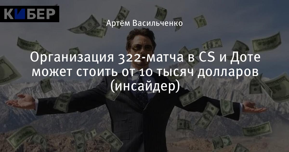 Организация 322-матча в CS и Доте может стоить от 10 тысяч долларов (инсайдер)