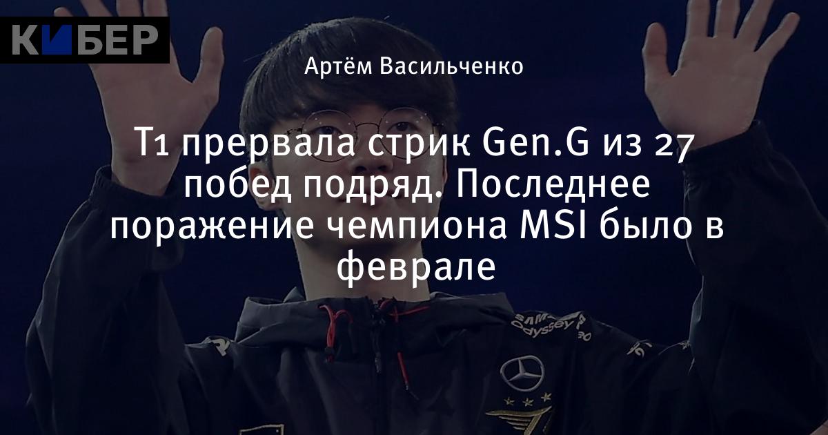 Отметим, что T1 прервала стрик Gen.G из 27 побед подряд. Чемпион MSI и Esports World Cup в последний раз проигрывал в финале кубка LCK, который прошел в конце февраля (2:3 против HLE). Это также первое поражение команды в сезоне – 19-1.