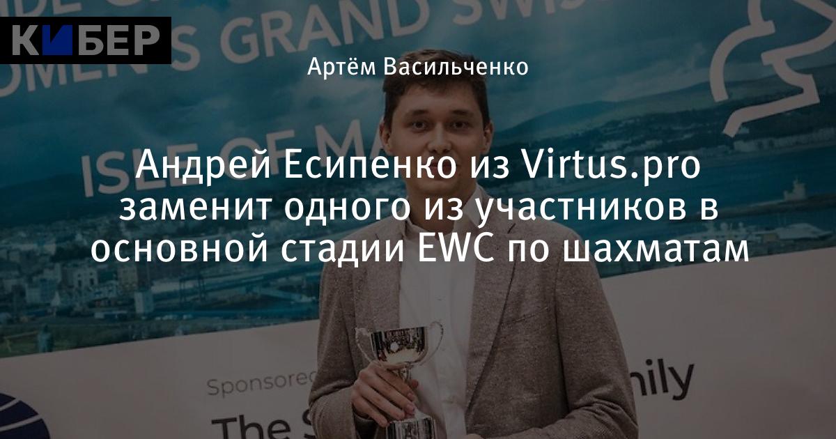 Киберспортивный клуб Virtus.pro сообщил, что Андрей Есипенко выступит в основной стадии Esports World Cup по шахматам. Отмечается, что россиянин заменит одного из участников, который не сможет принять участие в турнире.