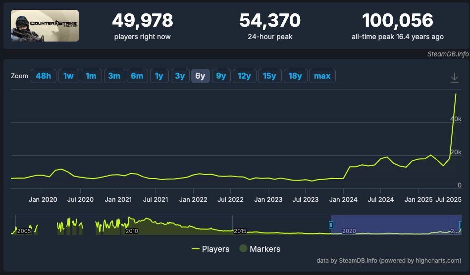 В CS: Source рекорд онлайна с 2012 года – 50 тысяч человек