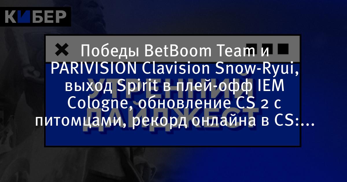 Победы BetBoom Team и PARIVISION Clavision Snow-Ryui, выход Spirit в плей-офф IEM Cologne, обновление CS 2 с питомцами, рекорд онлайна в CS: Source, роман Памелы Андерсон и Лиама Нисона и другие новости утра