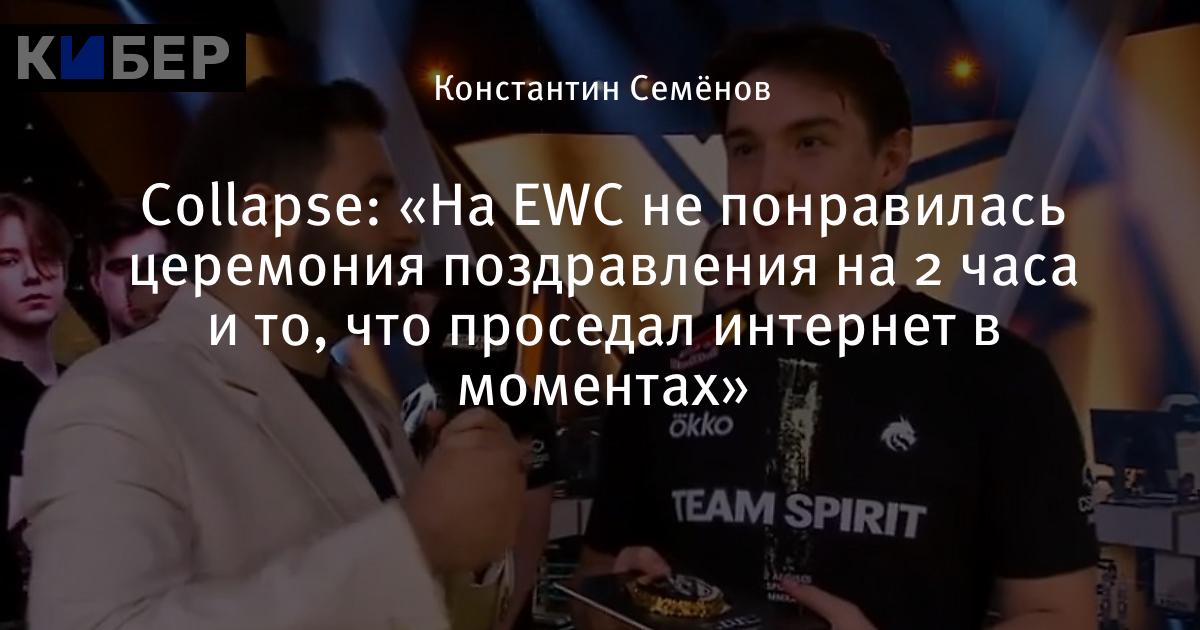 Collapse: «На EWC не понравилась церемония поздравления на 2 часа и то, что проседал интернет в моментах»