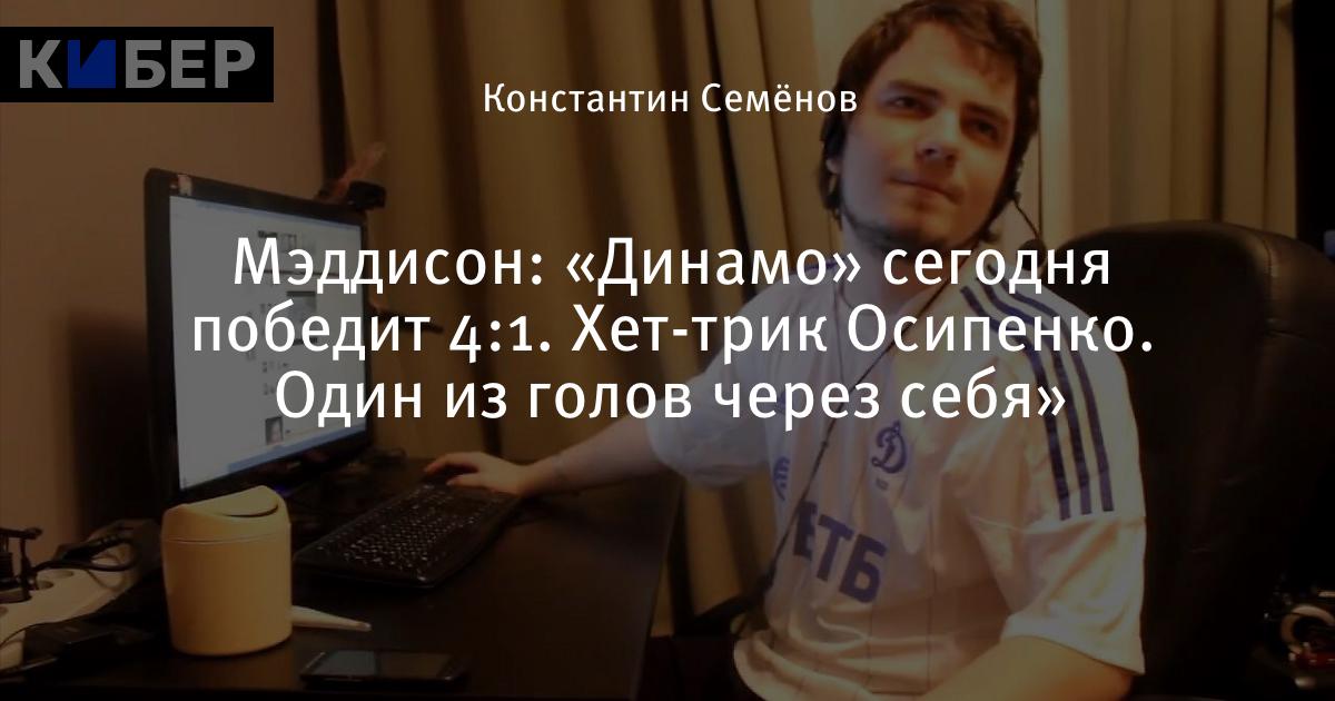 Мэддисон: «Динамо» сегодня победит 4:1. Хет-трик Осипенко. Один из голов через себя»