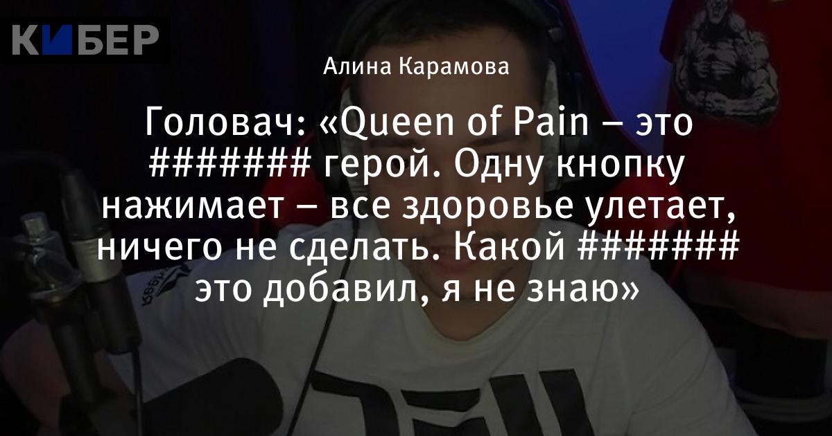 «Queen of Pain — это ####### [безумный] герой. Одну кнопку нажимает — все здоровье улетает, ничего не сделать. Какой ####### [дурак] это добавил, я не знаю. Разрабу в ##### [лицо] плюнул бы. Как она орет, я ему так же плюнул бы в ##### [лицо]. 1200 здоровья просто улетело в секунду», – сказал Головач.