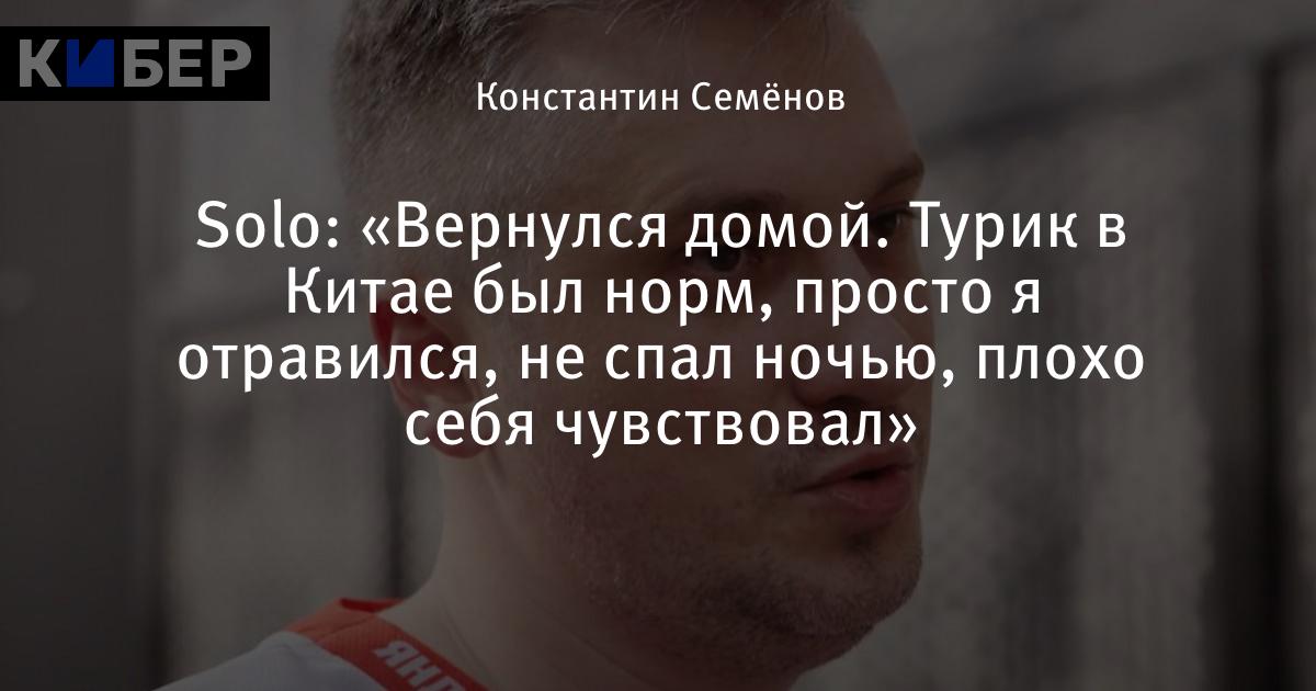 Solo: «Вернулся домой. Турик в Китае был норм, просто я отравился, не спал ночью, плохо себя чувствовал»