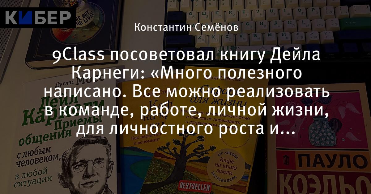 9Class посоветовал книгу Дейла Карнеги: «Много полезного написано. Все можно реализовать в команде, работе, личной жизни, для личностного роста и умиротворения»