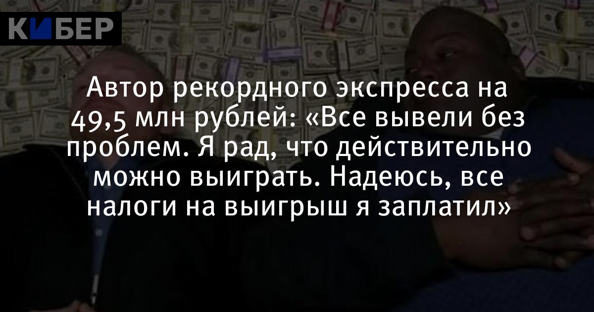 Автор рекордного экспресса на 49,5 млн рублей: «Все вывели без проблем. Я рад, что действительно можно выиграть. Надеюсь, все налоги на выигрыш я заплатил»
