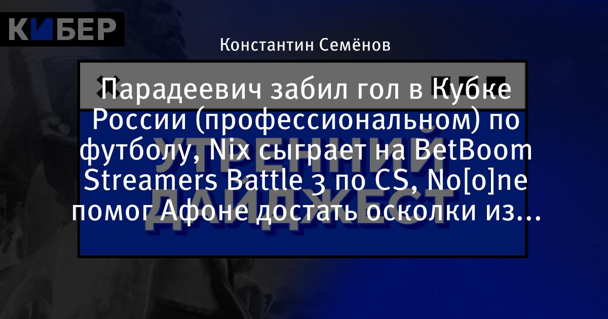 Парадеевич забил гол в Кубке России (профессиональном) по футболу, Nix сыграет на BetBoom Streamers Battle 3 по CS, No[o]ne помог Афоне достать осколки из ягодиц и другие новости утра
