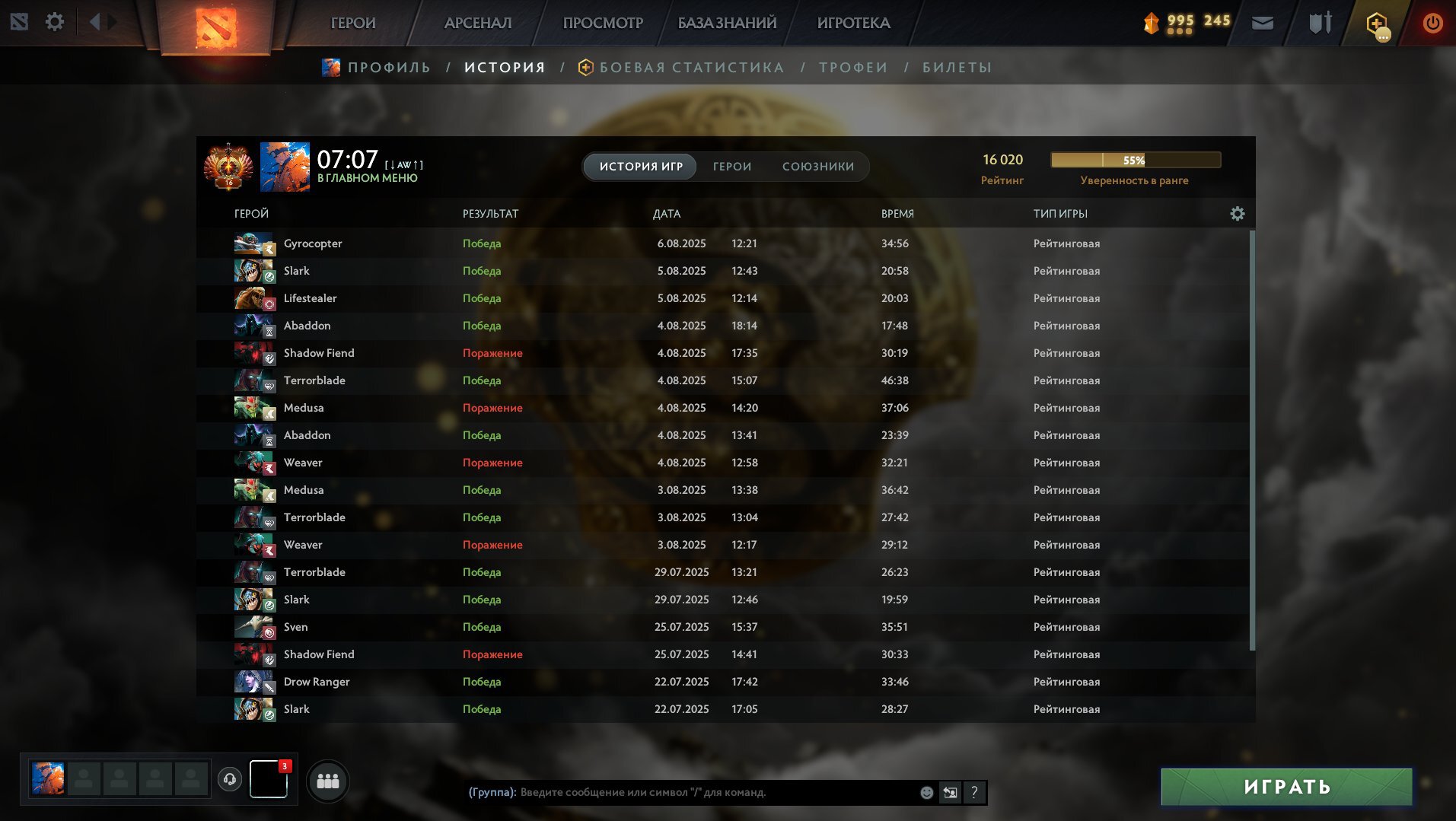 «12:21», – написал в своем твиттере Алик «V-Tune» Воробей время начала последней игры, после которой он достиг 16 тысяч MMR.