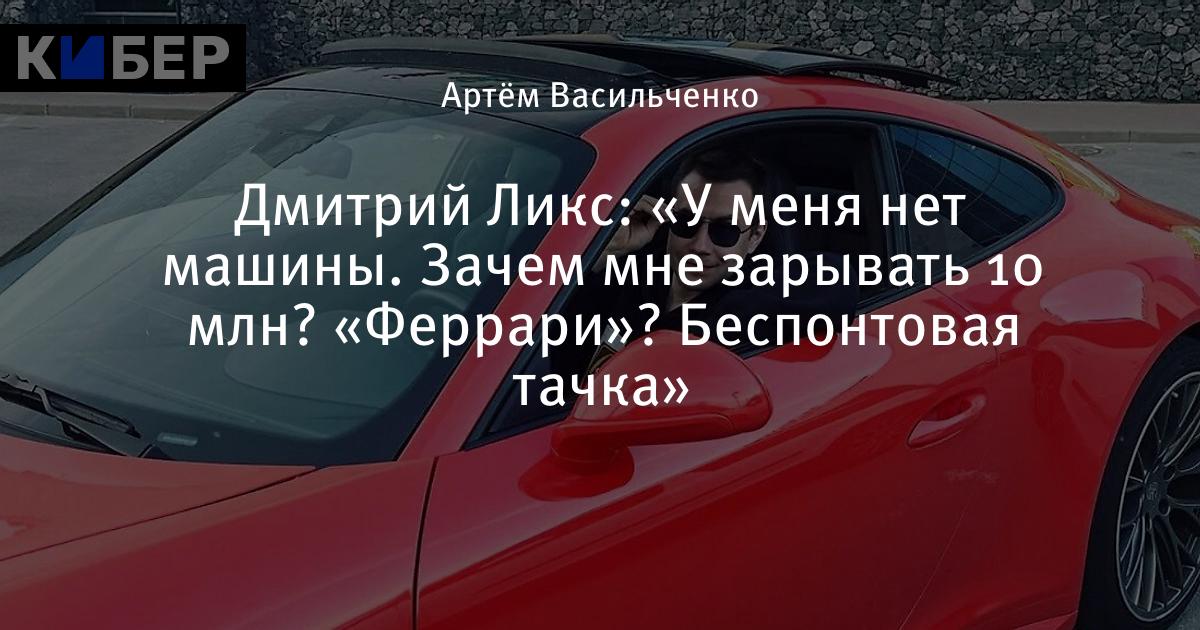Дмитрий Ликс: «У меня нет машины. Зачем мне зарывать 10 млн? «Феррари»? Беспонтовая тачка»