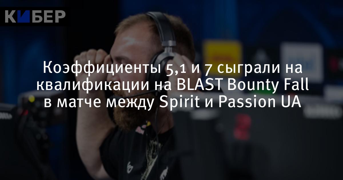 Коэффициенты 5,1 и 7 сыграли на квалификации на BLAST Bounty Fall в матче между Spirit и Passion UA