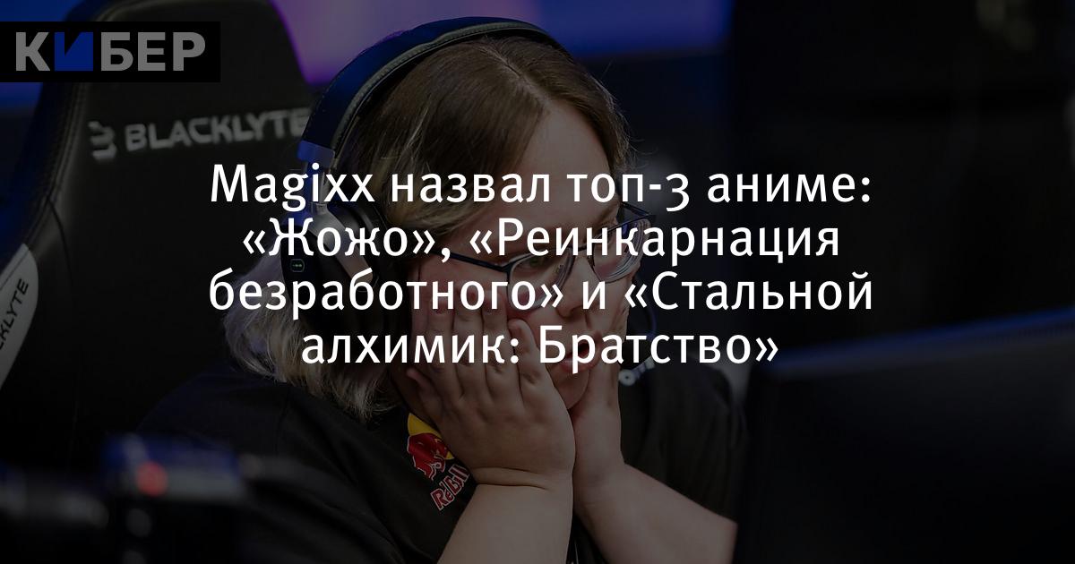 «[Назови топ-5 аниме на свой вкус] Могу назвать топ-3: «Стальной алхимик: братство», «Реинкарнация безработного» и «Жожо», – ответил Борис «Magixx» Воробьев.