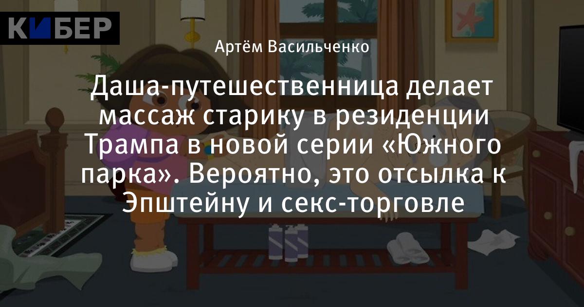 Даша-путешественница делает массаж старику в резиденции Трампа в новой серии «Южного парка». Вероятно, это отсылка к Эпштейну и секс-торговле