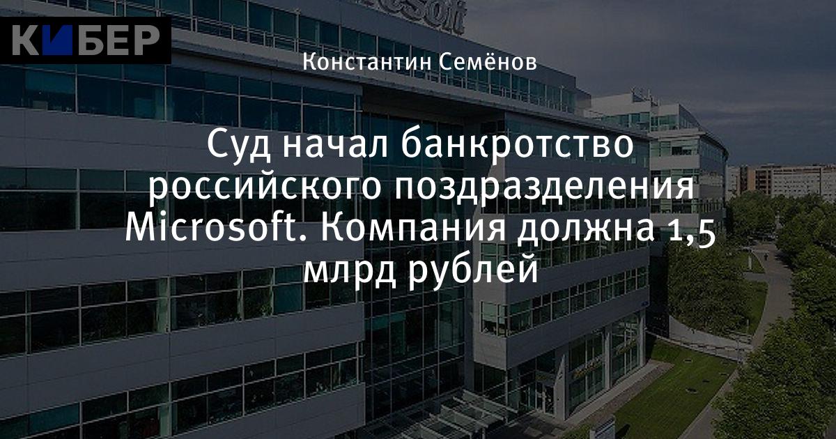 Суд начал банкротство российского поздразделения Microsoft. Компания должна 1,5 млрд рублей
