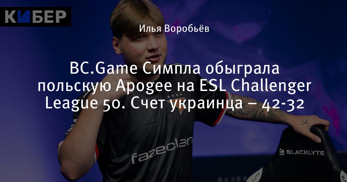 BC.Game Симпла обыграла польскую Apogee на ESL Challenger League 50. Счет украинца – 42-32