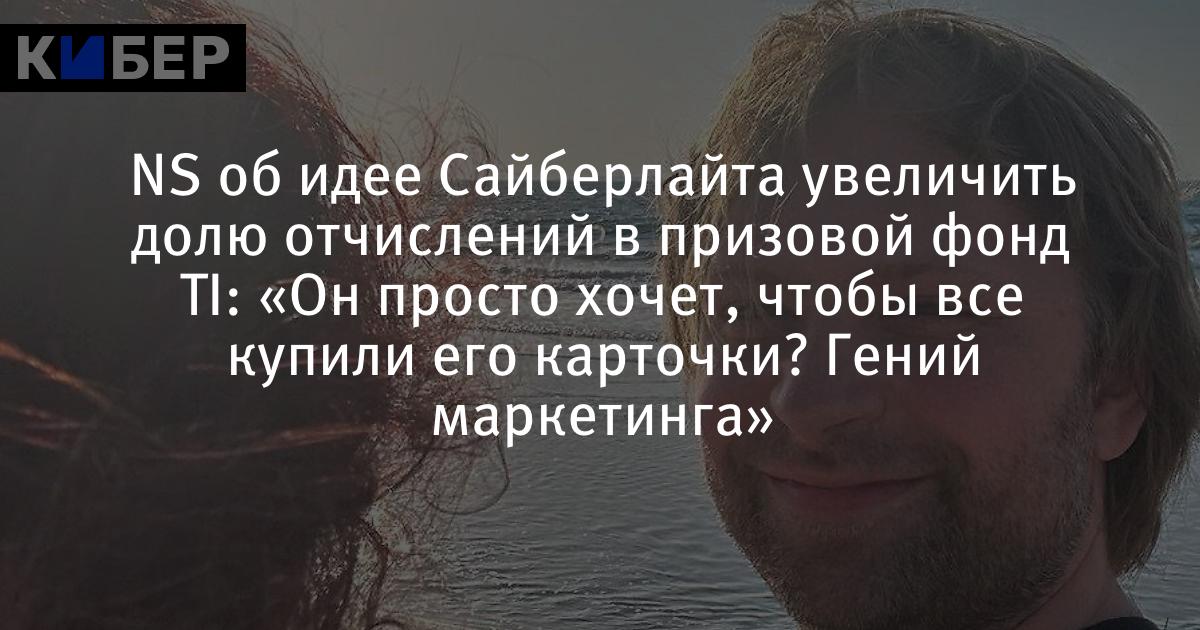 NS об идее Сайберлайта увеличить долю отчислений в призовой фонд TI: «Он просто хочет, чтобы все купили его карточки? Гений маркетинга»
