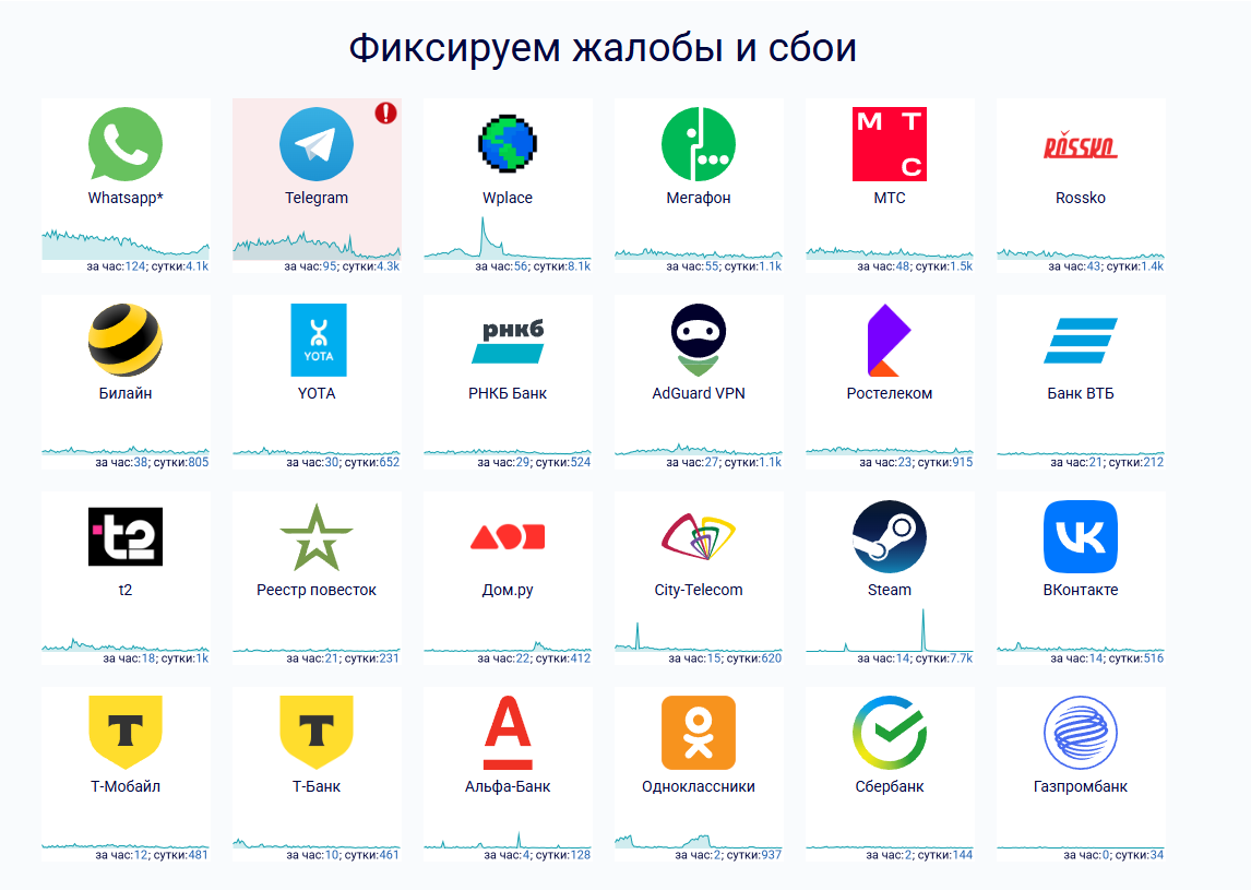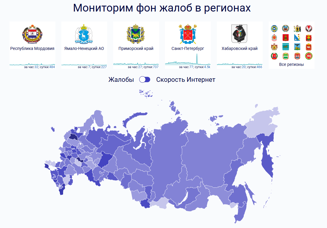 - Санкт-Петербург (83 жалобы за последний час).