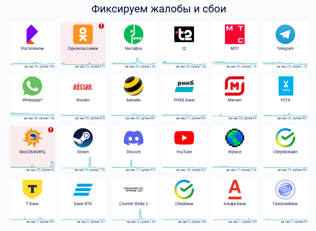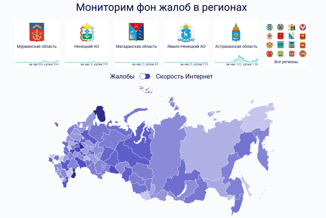 - Москва (103 жалобы за последний час);