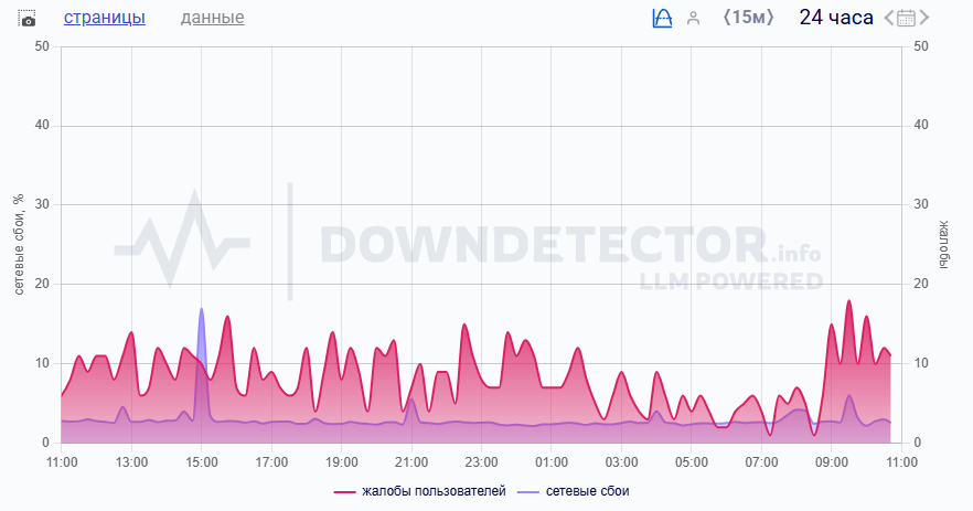 По данным сайтов «Сбой.рф» и Downdetector.su, за последний час поступают сообщения о проблемах в работе МТС из регионов:
